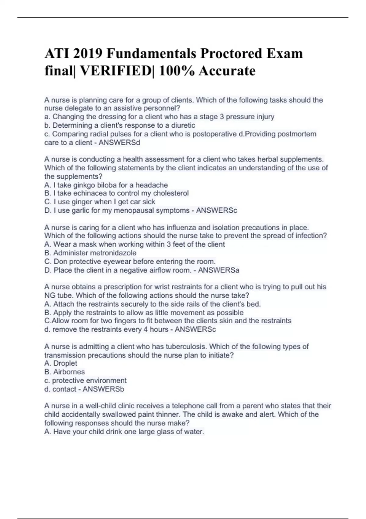 Ati Fundamentals 2019 Proctored Exam 2024/2025) (Complete And Verified) 300 Min.